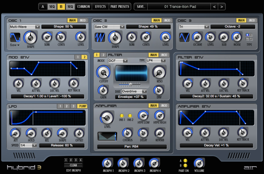 Hybrid 3.0, a high-definition analog and wavetable synthesizer, combines the legendary warmth of analog synths with a full range of futuristic digital manipulation capabilities. The result is a versatile virtual instrument that can sound like a synth you remember or something no one has ever heard before.
