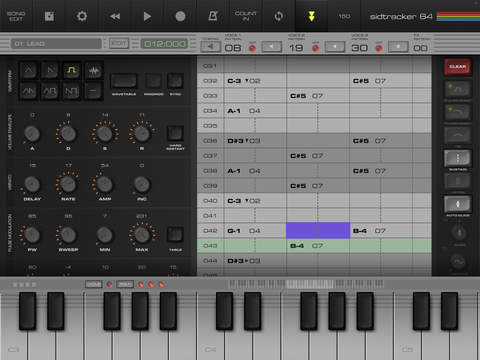 Editing is based on hands on touch interaction or midi input instead of the hardcore style of direct data editing. Record live to a metronome or input notes step-style. Real SID-composing has never been simpler and more fun!