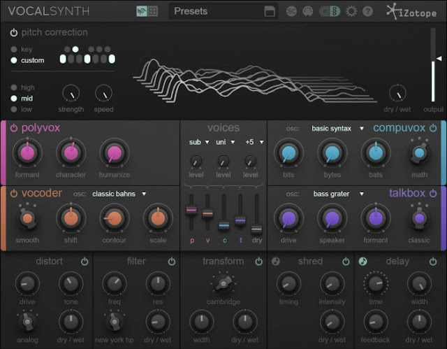 Inspired by decades of iconic vocal effects, from Peter Frampton to Beastie Boys to Daft Punk, iZotope, Inc. today announced the release of VocalSynth, a new creative plug-in for music producers and sound designers in search of distinctive vocals. VocalSynth is the first ever plug-in to bring together four advanced vocal engines – Vocoder, Polyvoice, Compuvox, and Talkbox – alongside specialized vocal effects and pitch correction. This unique combination of tools opens up fresh potential for vocal transformation: the ability to blend the modules unlocks sounds that were previously impossible, and genre-based presets ensure that classic vocal sounds are just a click away.