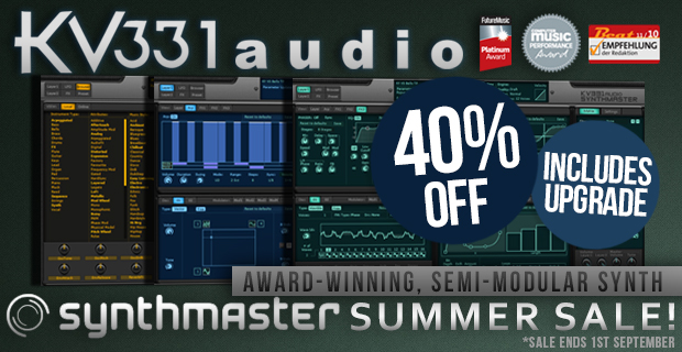 If you are interested in a swiss-knife Synthesizer plugin with a massive amount of different features than check out the sale of KV331 Synthmaster 2.8. Synthmaster offers a lot of content, a high-quality sound used by a lot of best-known producers and a very fair upgrade price for the future Synthmaster 3.