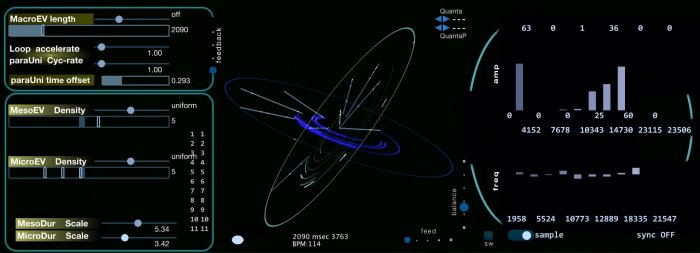 The new update offers dual macro events in each Cosmosƒ universe. When a macro event exceeds the user defined macro event duration due to overlapping meso events, then automatically the other macro event starts a new cycle while the previous one continues playing fully all its meso events. This phenomena suggests a continuum in audio processing of Cosmosƒ.