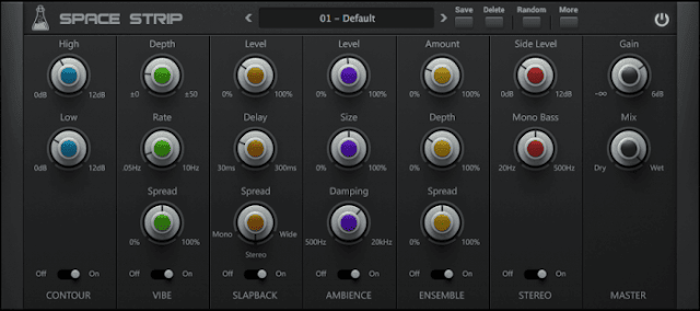 Space Strip is a multi-effect plugin featuring 6 modules: Contour, Vibe, Slapback, Ambience, Ensemble, and Stereo.The modules can be arranged in any combination by simple drag-n-drop. Space Strip will add depth and space to your sounds, especially synth and keyboards. The plugin is optimised to be lightweight on the CPU.