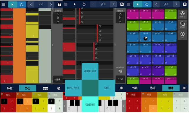 Entire songs can be composed by rearranging pattern blocks with your fingers. Complex arrangements and organisation is possible with the user having control over song name, pattern block colors, loop counts and durations.