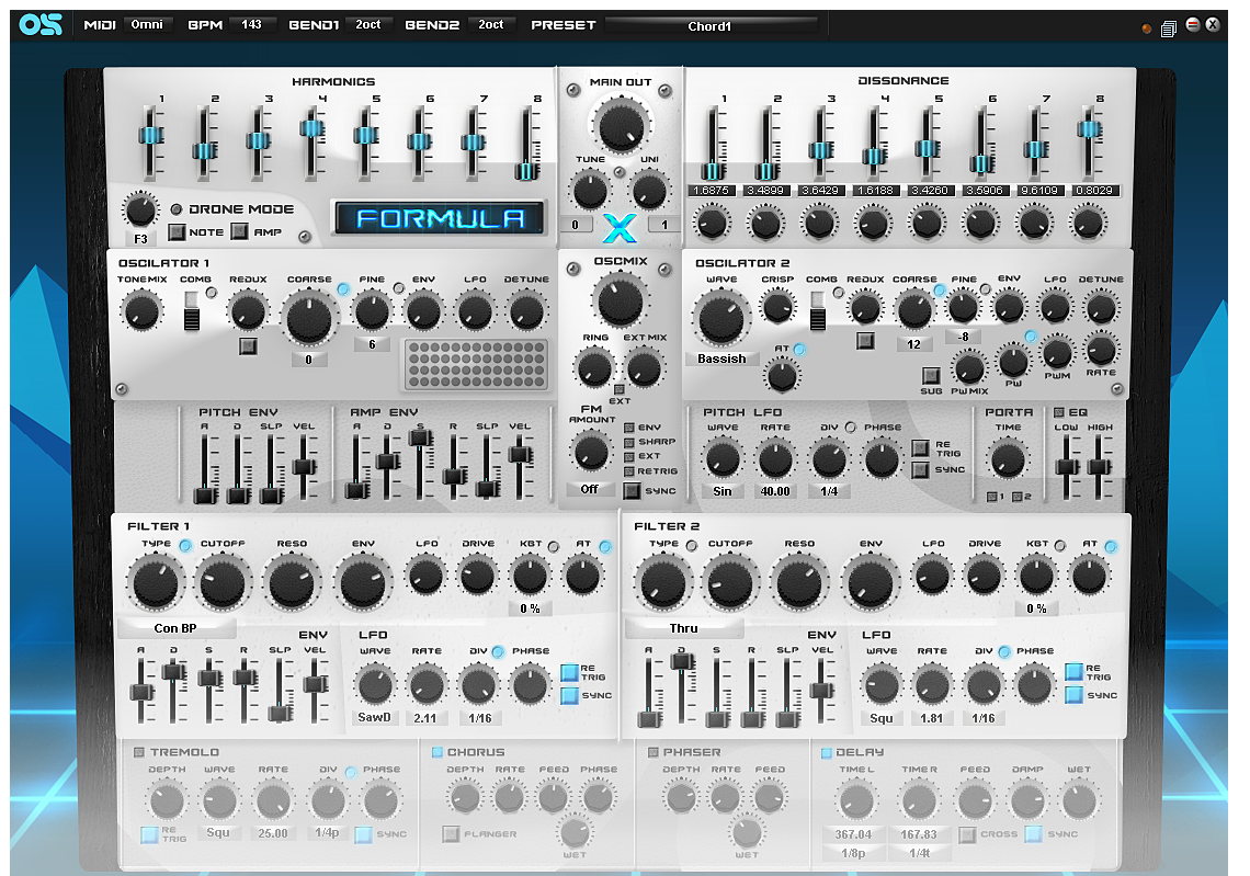 A hybrid technology Synthesizer featuring additive, wavetable, fm and subtractive synthesis elements featuring a unique signal flow with a-symmetric oscillator and filter sections, extensive modulations and powerful built in effects.