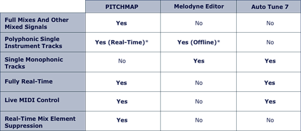 Here is an sheet where you can compare Pitchmap with other essential plugins for transform your tune.