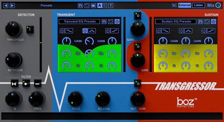 Boz Digital Labs released last week a new drum manipulation plugin with the name Transgressor. An interesting new plugin for your drum sounds. It allows you to EQ transients and sustains separately. For limited time only, save 50% during the introduction time.