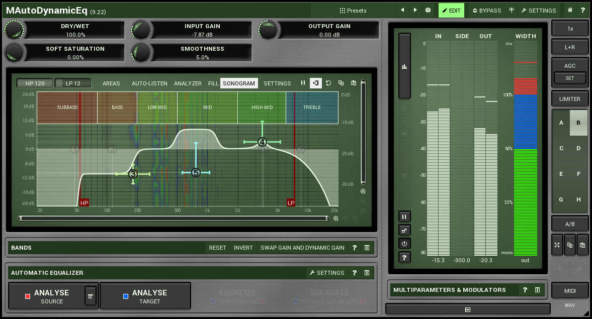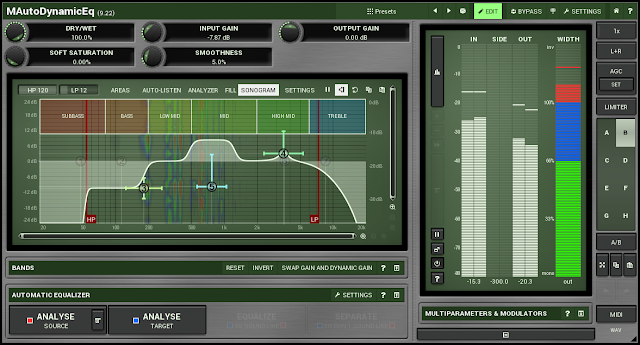MAutoDynamicEq is the ultimate “go-to” parametric equalizer, that combines astonishing versatility with ease-of-use to produce a really musical sound. Inspired by the analog world, but taking advantage of the digital!