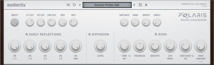 Polaris is an echo/reverb plugin inspired by early hardware digital reverbs of the late 1970s and able to provide echo, ambience and reverb out of a single multitap delay line. We extended this technique by making the Echo tap recirculating with the Diffusion section, allowing longer reverb tails. Furthermore you can easily edit all taps to create your own room responses, resonant combs, Karplus-like tuned delay lines, Chorus, Flanging, Vibrato and much more.