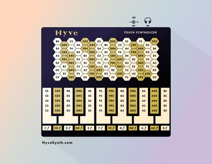 Explore and harmonize: Notes on the Hyve are arranged so that you can easily explore harmonies and tone combinations with small movements of your finger.