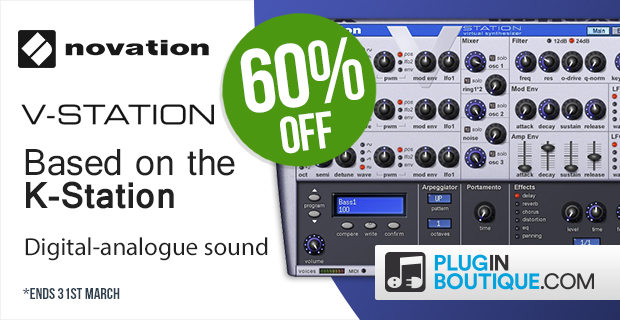 Plugin Boutique announced a special sale on the classic Novation V-Station Synthesizer plugin for PC and Mac. For limited time only, you can buy this plugin with a 60% OFF discount.