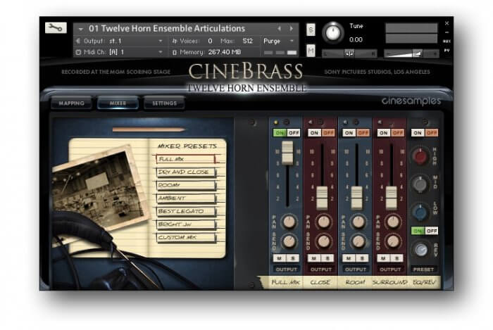 CineBrass Twelve Horn Ensemble includes a brand new mapping area styled after CineStrings SOLO that allows for greater flexibility in customizing composer workflows.