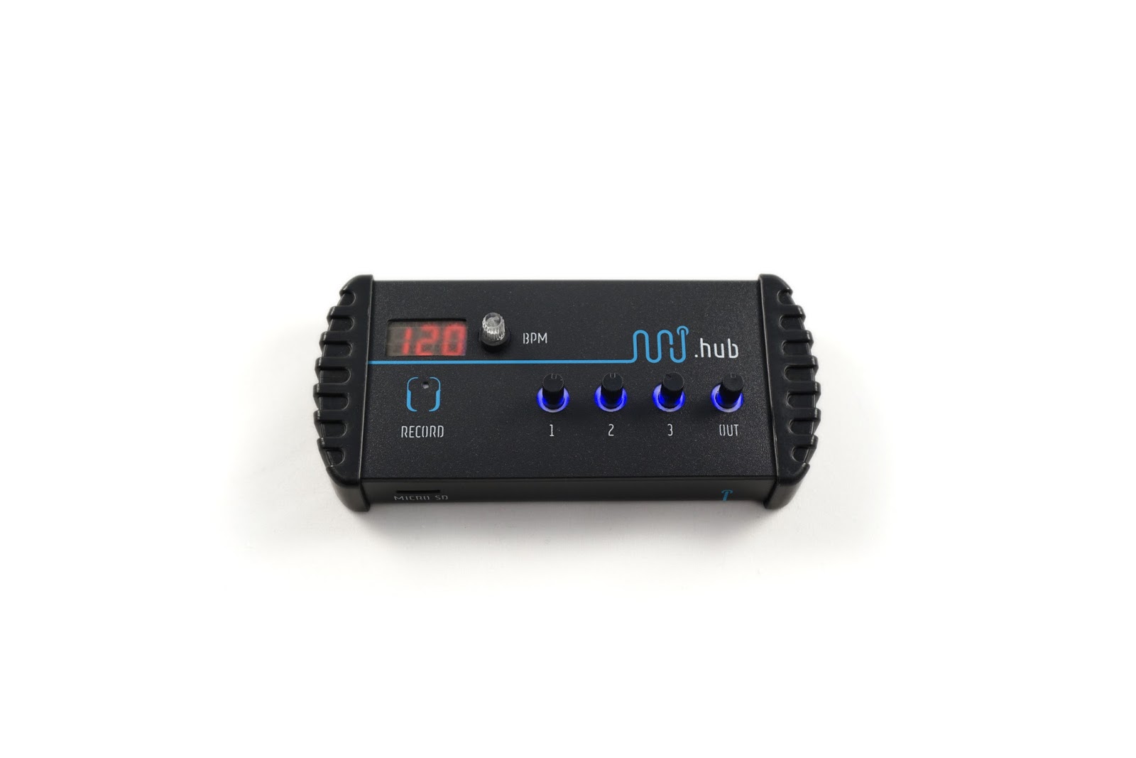 Each device is powered by a rechargeable battery and can be used standalone or as part of the set. You don’t need any software or mobile phone. The mixer keeps all connected devices synchronised and also allows for the integration of other hardware with it’s sync triggers on the second channel of the stereo connectors. (e.g. Pocket Operators, Volcas,etc.)