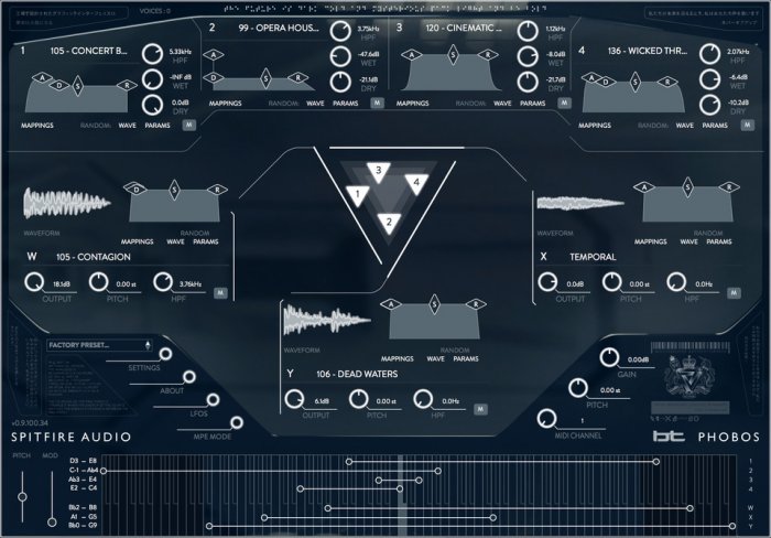 A polyconvolution Synthesizer plugin enters the ring of soft synths this week. Yes, we talk here about the new Spitfire Audio BT Phobos Synthesizer which is developed in collaboration with Brian Transeau (BT) and no, it’s not something already available on the market. In this new product, Spitfire Audio and BT comes to the idea to think further how to design sounds and how they can design a instrument which sound different than all other virtual instruments. They come to the conclusion to develop a new technology which goes beyond classical reverb or amplifier distortion circuit convolution technologies. The result is a new method that enables to work with tonal components inside reverb impulse responses.