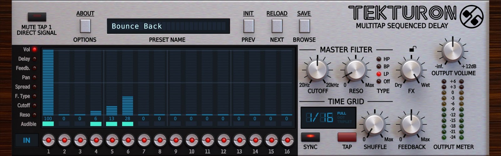 D16 Group announced today the official release of Tekturon multi-tap sequenced delay effect plugin for PC and Mac. A very special delay plugin with some unqiue features. Tekturon offers 16 delay lines all arranged in a sequence to provide a level of inspiration and allows user to create new sounds not possible with normal delay plugins.