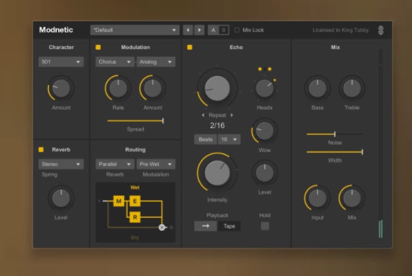 MODNETIC offers comprehensive emulation of classic analog tape delay hardware from the 1970’s. No mere slavish analog emulation, MODNETIC also has a few digital twists. MODNETIC gives you four powerful effects in one: supreme analog emulated tape delay, extremely realistic spring reverb choices, bucket brigade chorus / flanger / phaser and classic tone. Analog sounding on the one hand, but digital clarity and impossible tricks on the other, such as classic digital phasers, reverse-tape and clickless realtime routing options. This is built solid enough for live performance as well as to transform your studio.