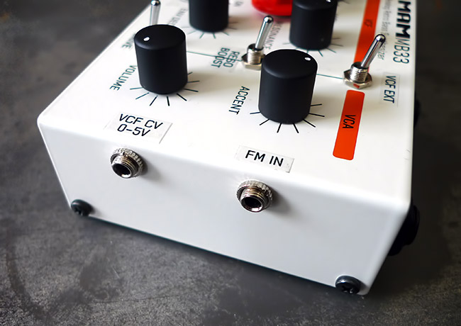 VCO On/Off Switch: Normally when you plug a jack into the external VCF input, the MB33’s VCO is automatically removed from the mix. As there may be occasions where you don’t want this to happen, or situations such as when you’re using the filter lock mod (see below) when you want to be able to turn the VCO on and off yourself, we’ve added a switch to add manual control of this.