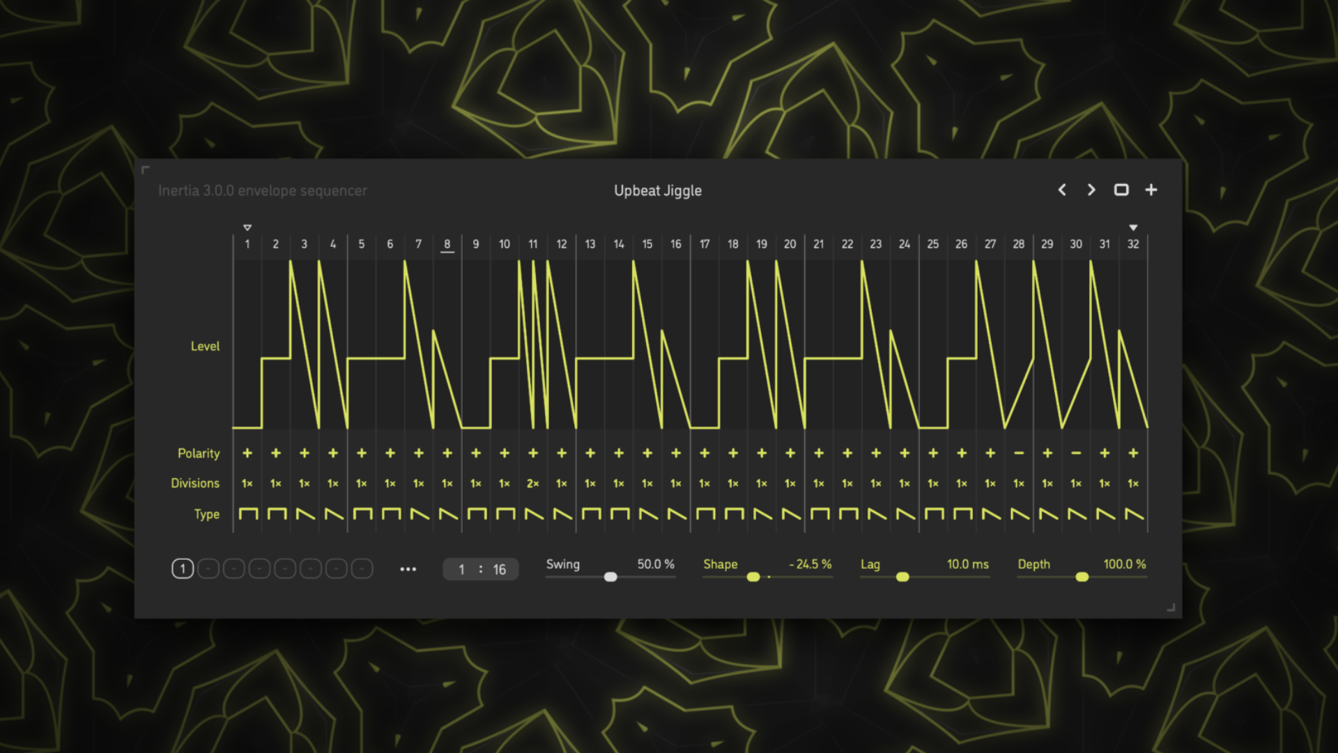 An elastic step sequencer engine with a wide range of timing settings drives the Inertia v3, making both polymetric and polyrhythmic results possible.