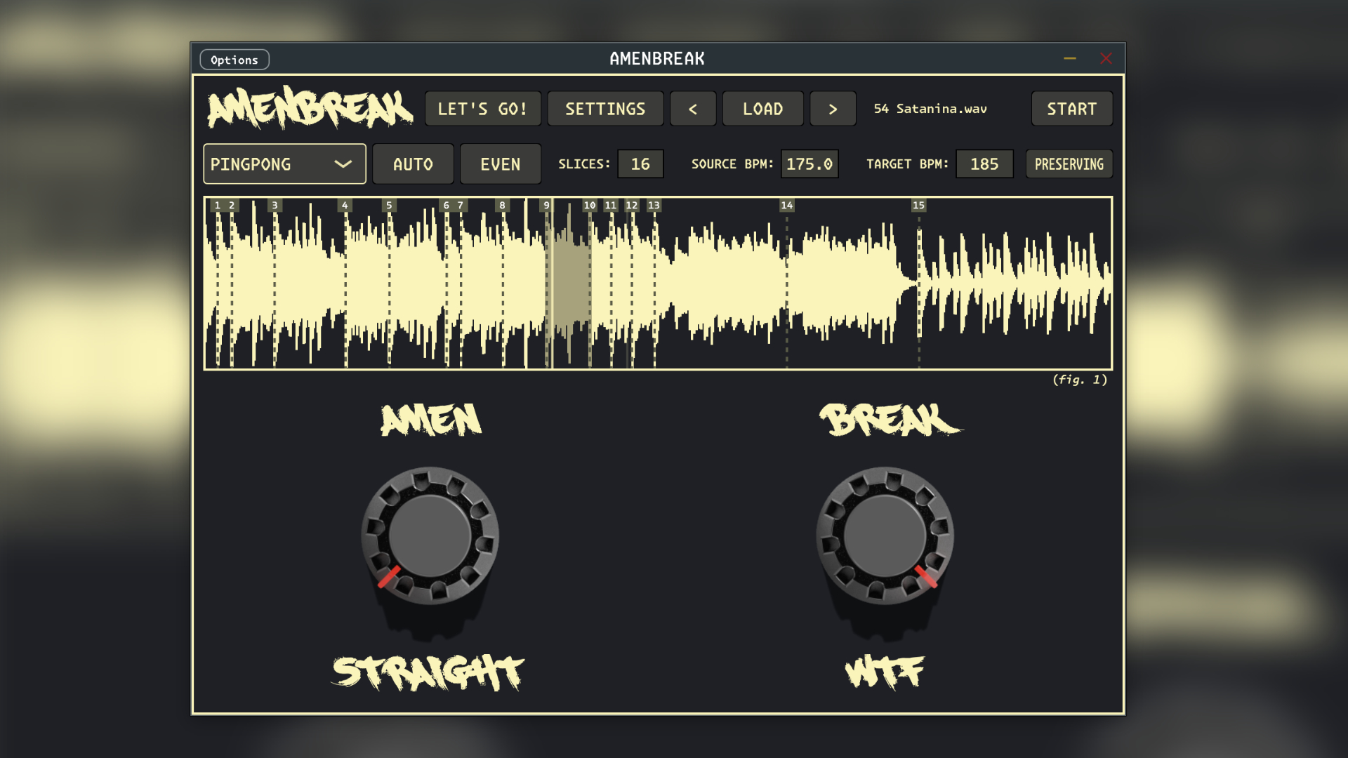The internal sequencer then runs straight through the slice sample, but the real fun begins with the main parameters: “Amen” and “Break”.