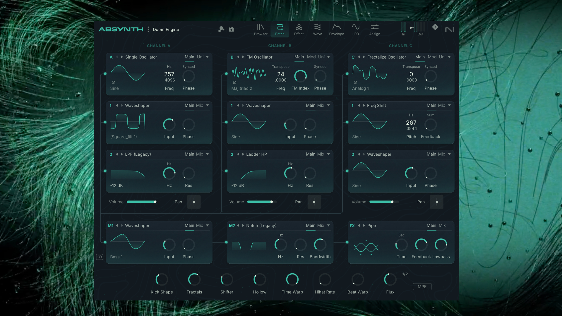 Absynth 6 houses all the semi-modular synthesis features of Absynth 5. Additionally, Brian Clevinger enhanced and expanded the engine in various areas to bring it up to more modern standards, including polyphonic aftertouch/MPE support.