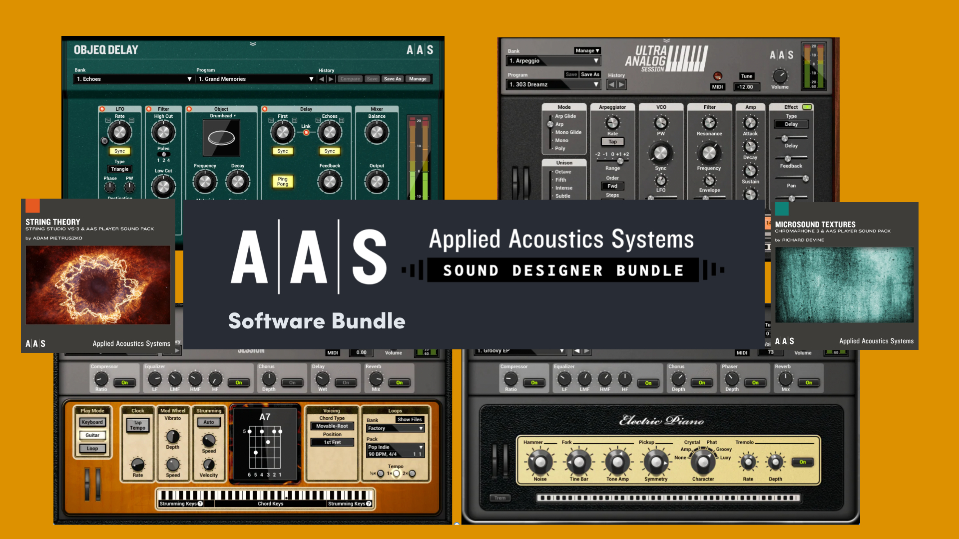 AAS has launched the Sound Designer Bundle at Humble Bundle, offering four physical modeling plugins and 16 sound packs for 25,76€.