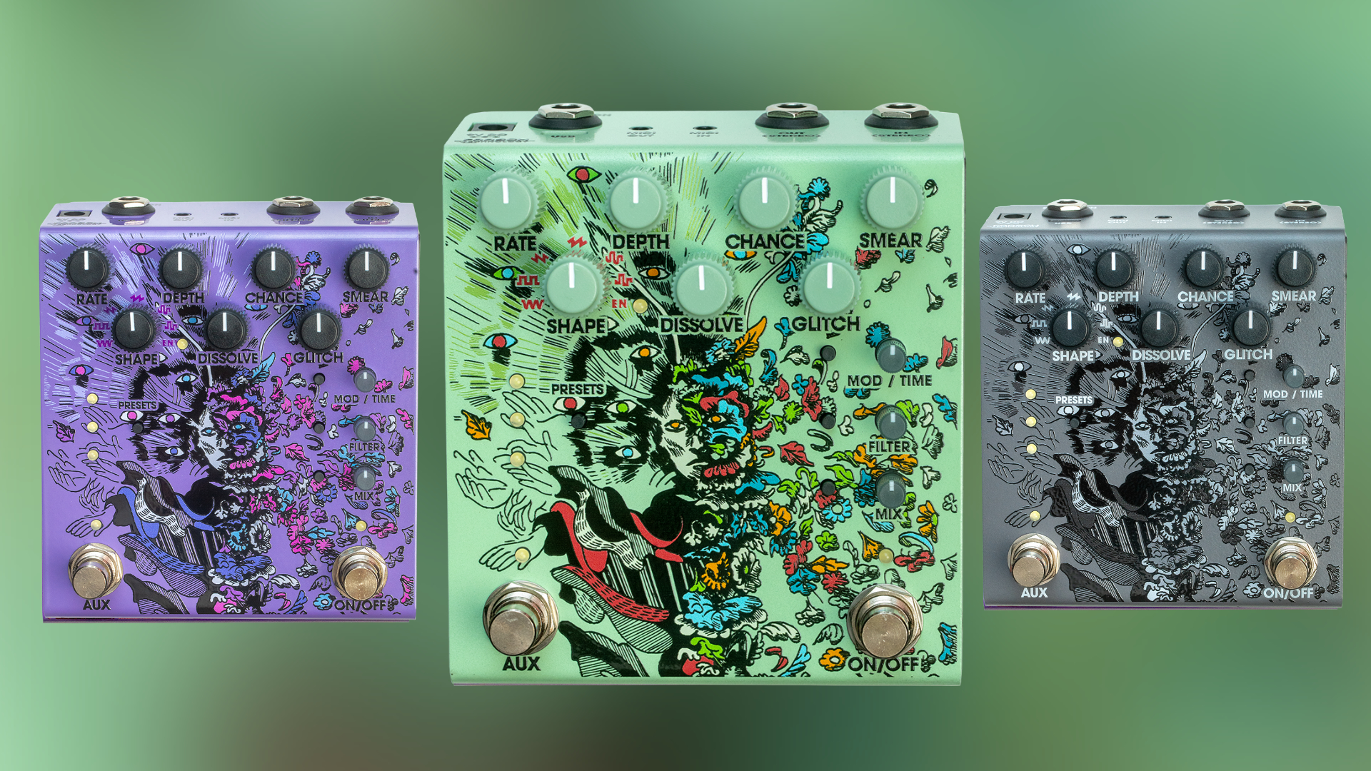 It consists of three sections: modulation, glitch delay/reverb, and dissolve. It starts with the glitch delay/reverb that gives you three hands-on controls for chance, smear, and glitch.