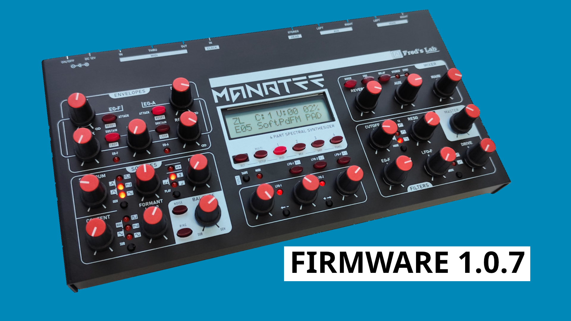 Fred’s Lab has updated the Manatee to firmware 1.0.7, adding new features to its multi-timbral 16-voice MPE spectral Synthesizer.