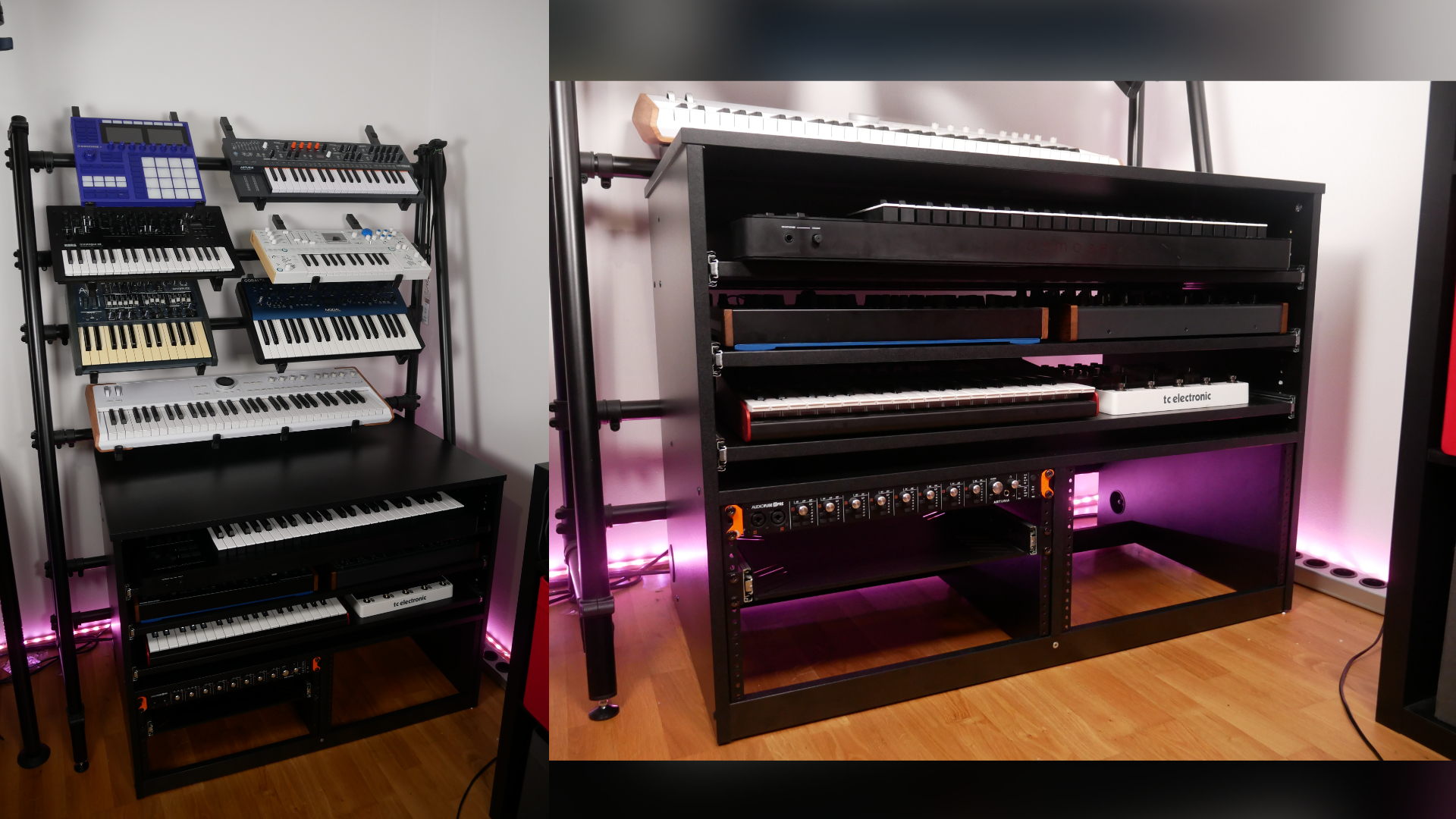 With the second configuration, which I customized to my liking, more synthesizers from my studio now fit on the drawers.